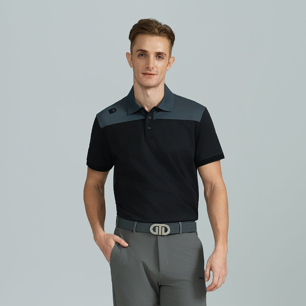 This performance polo features a contrast shoulder panels that extends to the back to create not only structure but visual impact. Breathable fabric allows for confident, all-day movement.